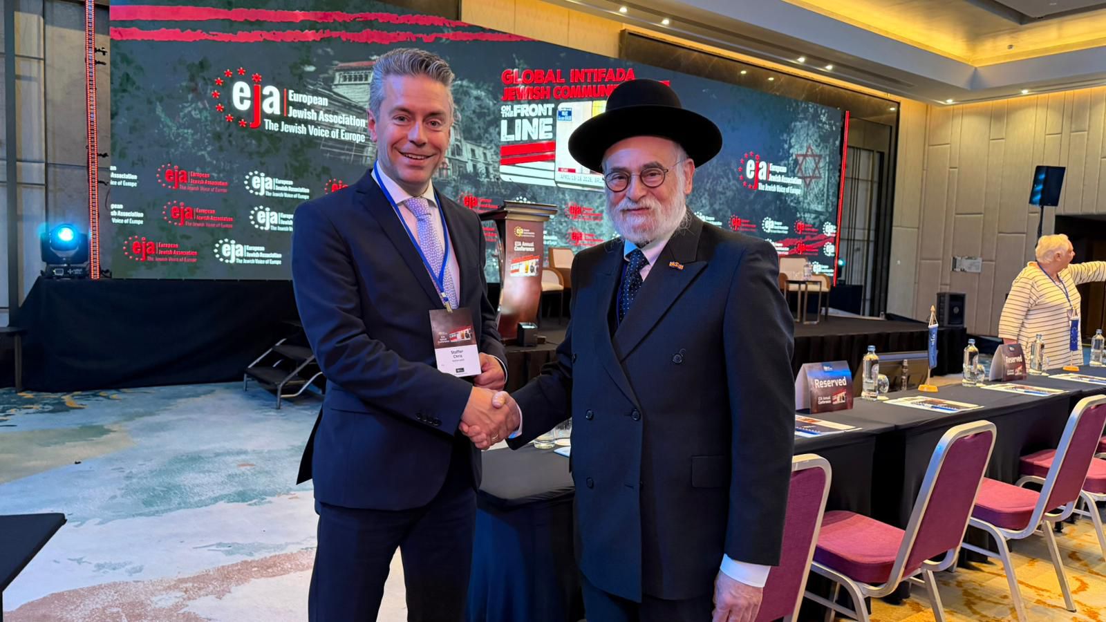 De conferentie is geweldig. Op de vraag of je als Jood bang bent om anno 2026 zichtbaar Joods op straat te lopen, was de uitslag (stemming met de mobiele telefoons) 50 procent - 50 procent en op de vraag of de Joodse gemeenten zich na 7 oktober in de steek gelaten voelden door hun lokale en nationale overheden gaf 72 procent van de Joodse bestuurders aan dat ze zich niet gesteund wisten. Maar desondanks gaf de overgrote meerderheid duidelijk te kennen dat ze er niet over peinzen om hun Europese geboorteland te verlaten. Alleen de vertegenwoordiger van Ierland, woonachtig in Dublin, wil haar kinderen niet in haar geboorteland zien opgroeien. De reden: in Ierland wordt er van overheidswege geen enkele vorm van beveiliging geboden. De Joodse gemeenschap moet dat zelf verzorgen en bekostigen.