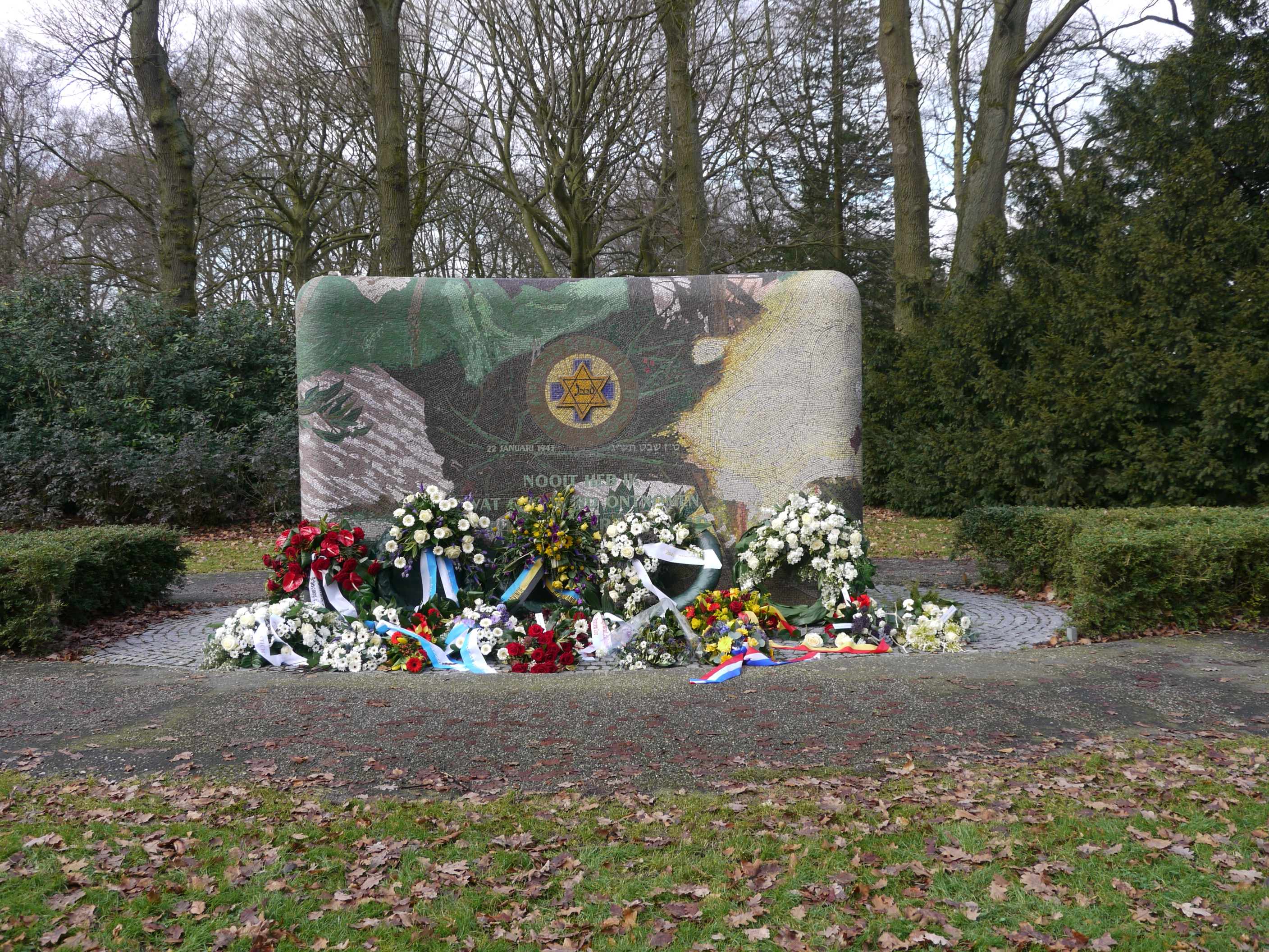 Gisterochtend de jaarlijkse herdenking van het Joods psychiatrisch ziekenhuis het Apeldoornsche Bosch en het Paedagogium Achisomog bij het monument in het Prinsenpark te Apeldoorn. Ongeveer veertienhonderd bewoners, patiënten, artsen en verpleegkundigen werden in de nacht van 21 op 22 januari 1943 van hun bedden gelicht, op brute wijze, sommigen naakt, anderen in dwangbuizen, afgevoerd, in vrachtwagens gesmeten, naar het Apeldoornsche station gereden en vanaf Apeldoorn rechtstreeks naar Auschwitz getransporteerd om na aankomst aldaar op de meest brute wijze vermoord te worden. Ongeveer veertienhonderd, want af en toe wordt er nog een naam gevonden die dan aan de namenlijst aan weerszijden van het monument wordt toegevoegd en hiermee zijn de slachtoffers dus niet helemaal van onze aardbodem verdwenen.