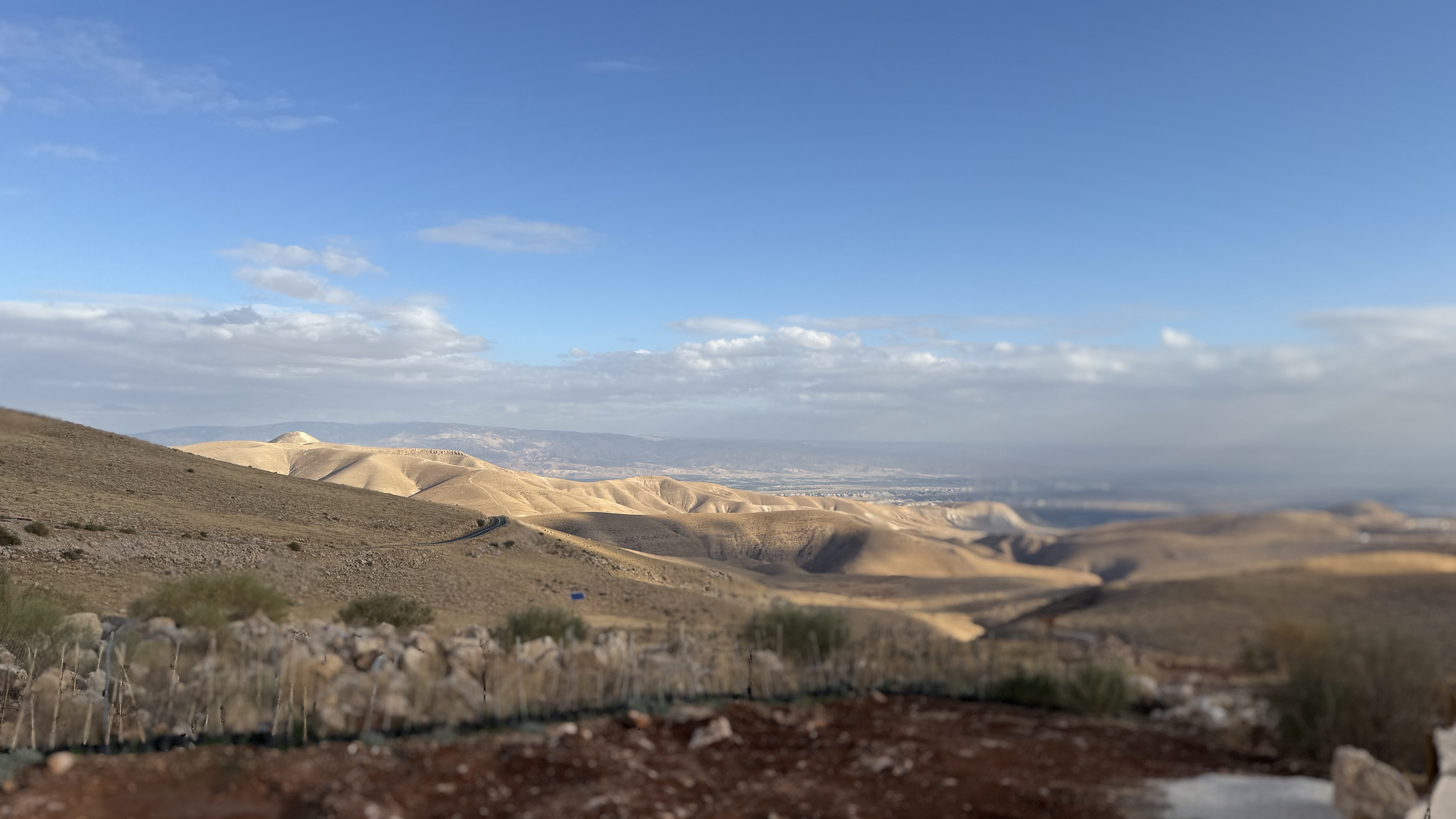 Hij neemt ons mee naar een uitzichtpunt in het dorp. Het is helder weer, we zien Tel Aviv, de Middellandse zee, Netanya en Herzliya. Hier, op wat media de WestBank noemen, is pijnlijk duidelijk hoe kwetsbaar de steden van Israel zijn.