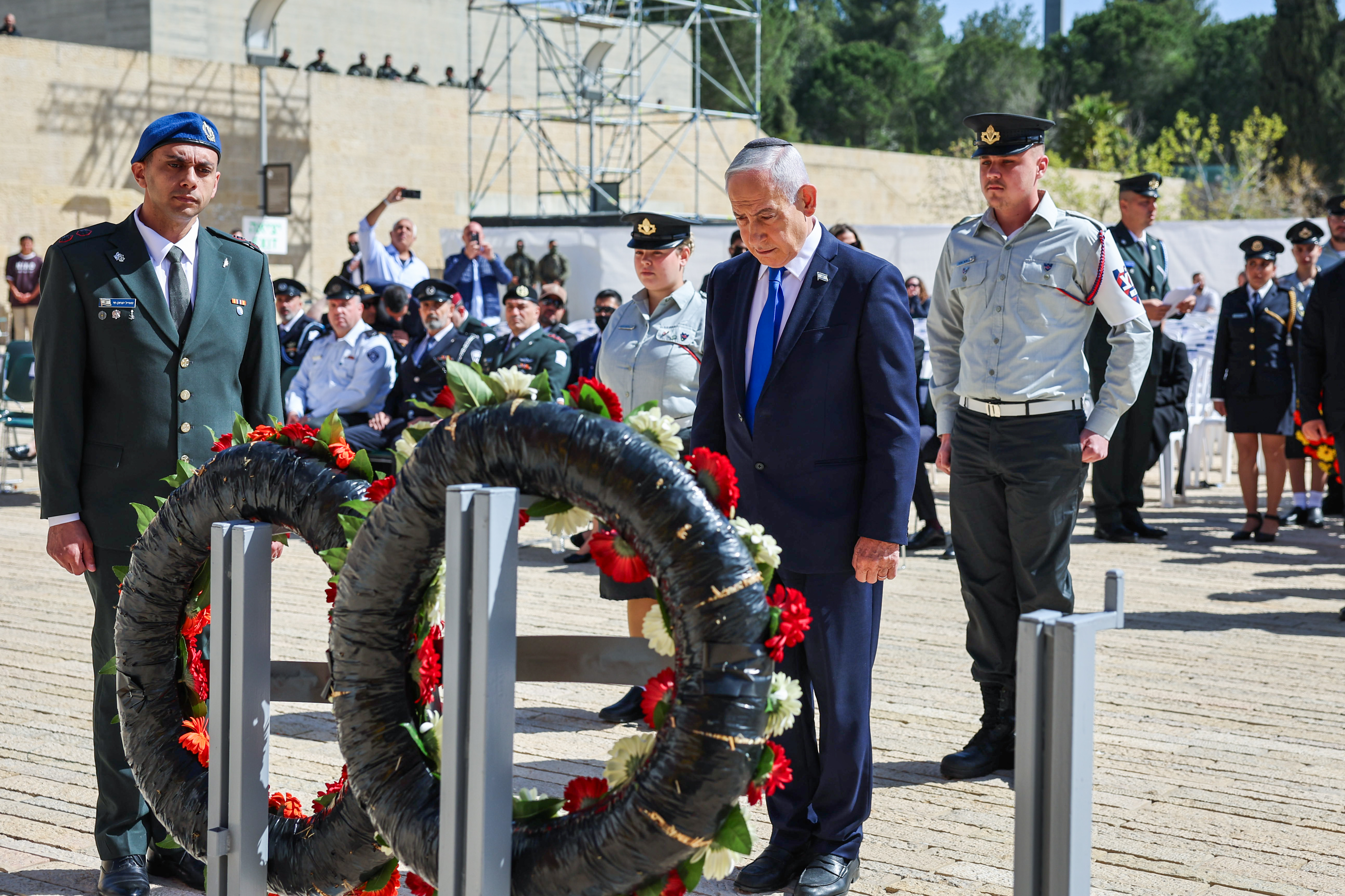 “Laten we op deze Yom Hashoah niet vergeten dat de staat Israël op het hoogtepunt van zijn macht staat. Wie had tachtig jaar geleden kunnen denken dat onze moedige luchtmachtpiloten en Amerikaanse militaire piloten zij aan zij het Midden-Oosten zouden verdedigen? We verdedigen Israël, de Verenigde Staten en nog iets anders: we verdedigen Europa”, verklaarde de premier.